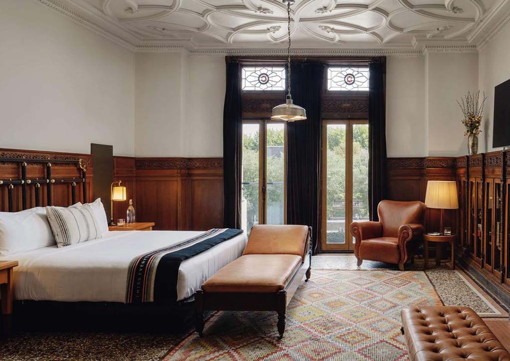 Nestled in the historic Wicker Park neighborhood, The Robey is a boutique hotel that combines industrial-chic design with historic architectural charm. The building itself dates back to the 1920s, and the designers retained original features such as concrete floors, exposed brick walls, and steel beams while integrating modern amenities for comfort.